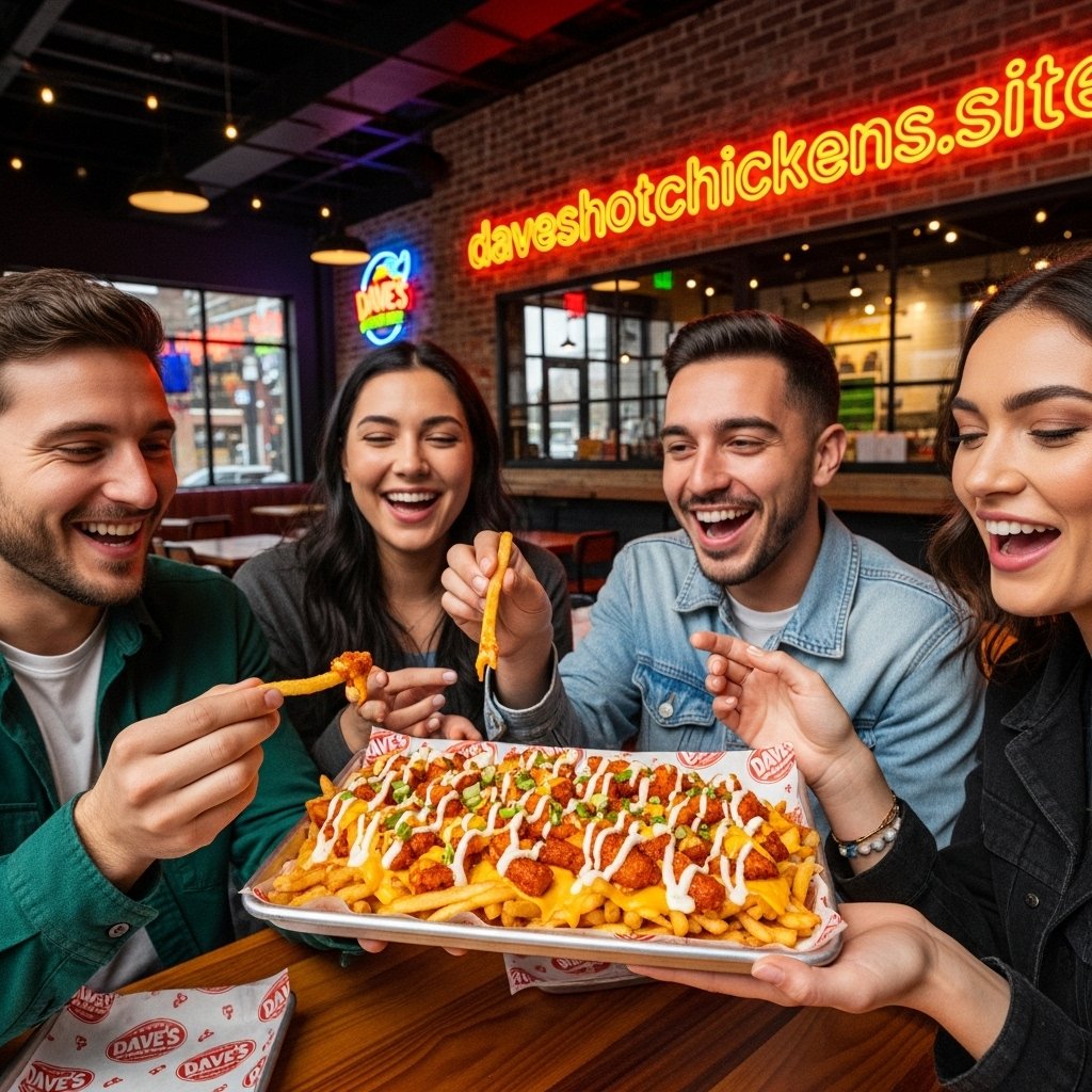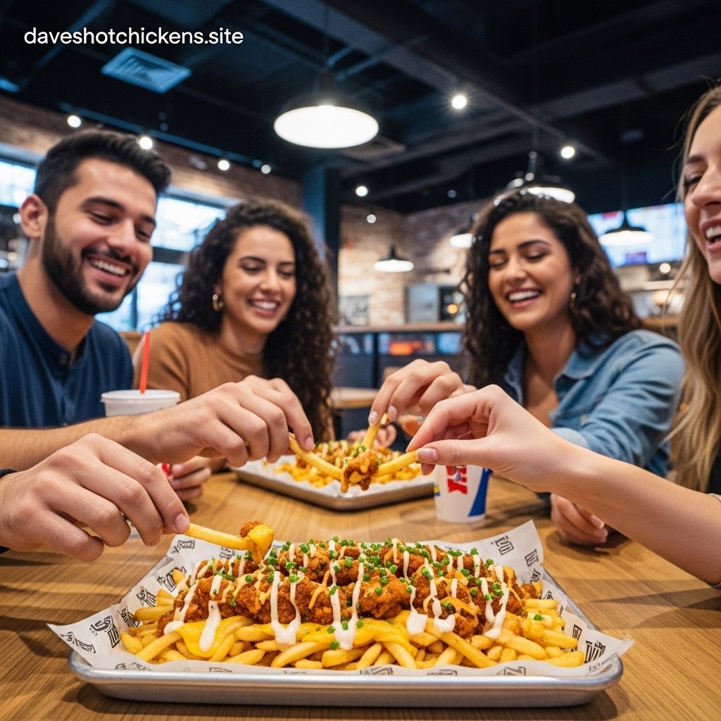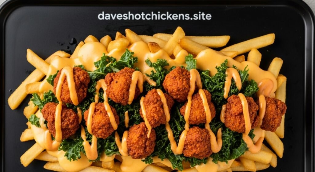 I remember the first time I tried them golden fries, gooey cheese sauce, spicy chicken bites, and that drizzle of Dave’s signature sauce it was love at first bite. The mix of crunch, heat, and creaminess makes it impossible not to finish the whole box.